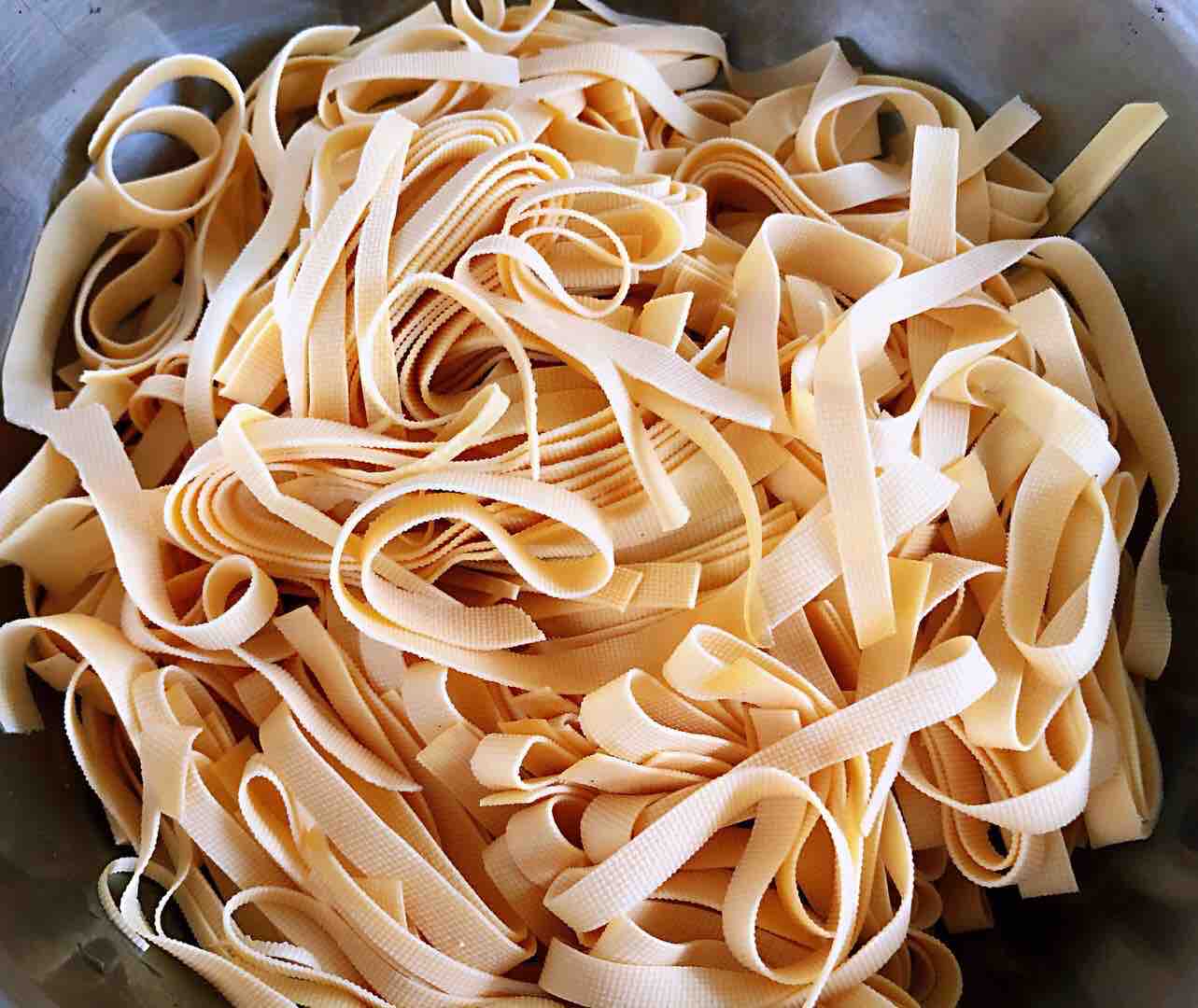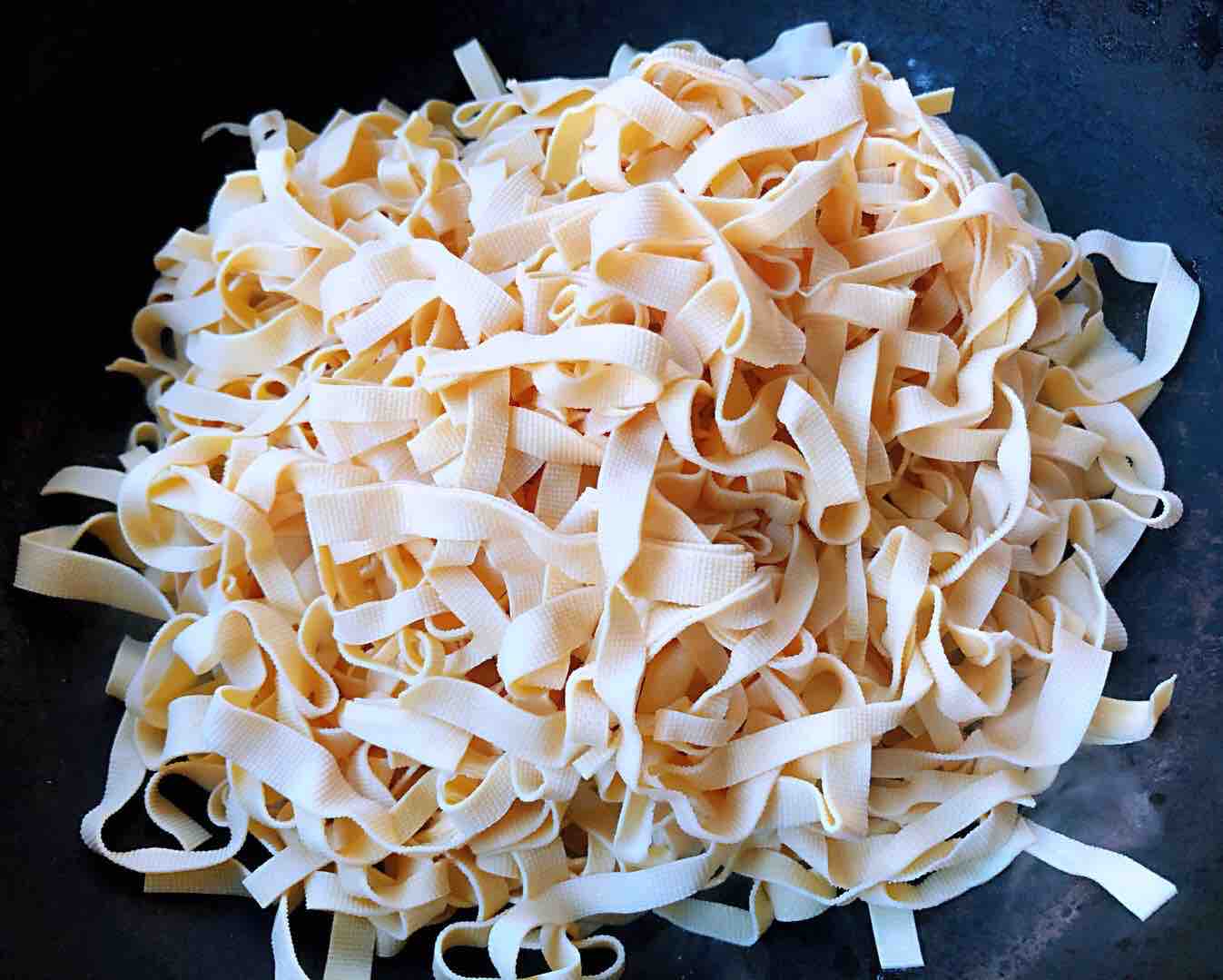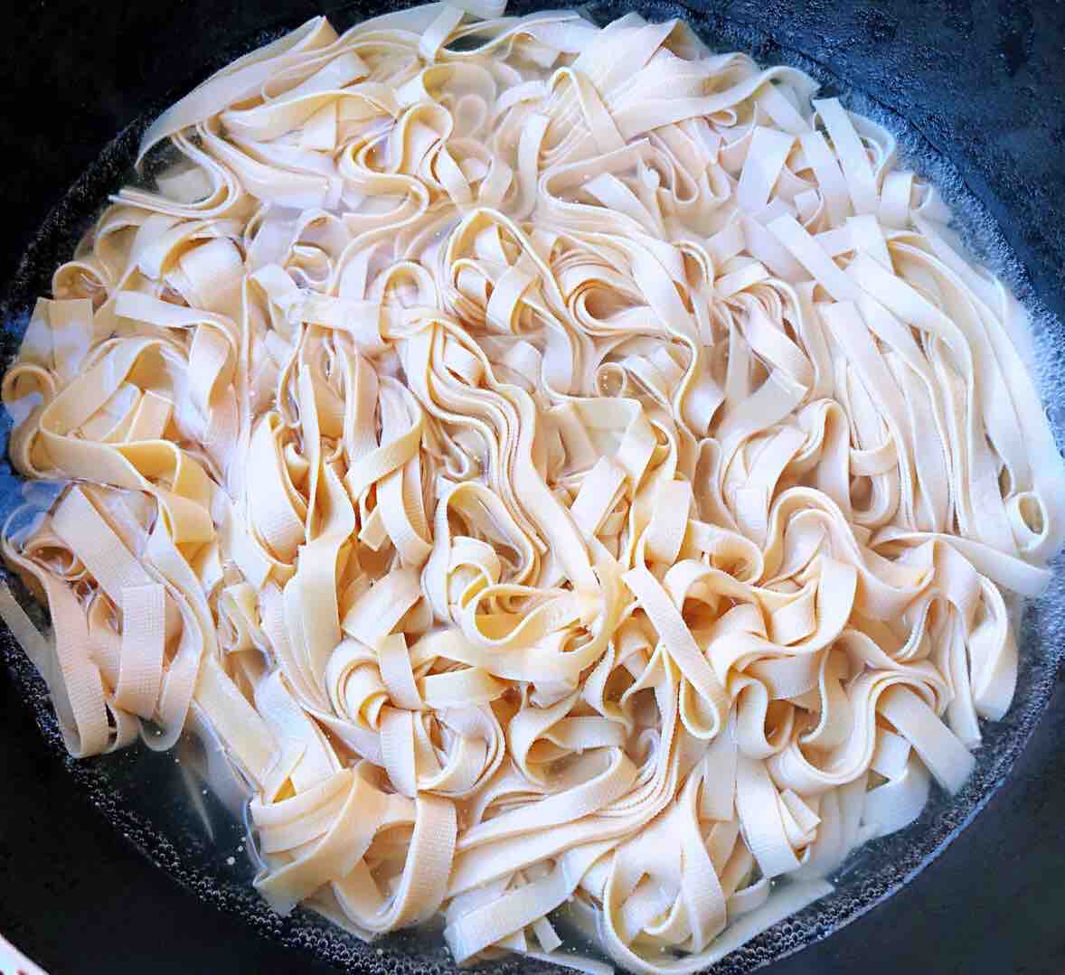 4、锅中烧开水,放入千张丝焯水,去除豆腥味。