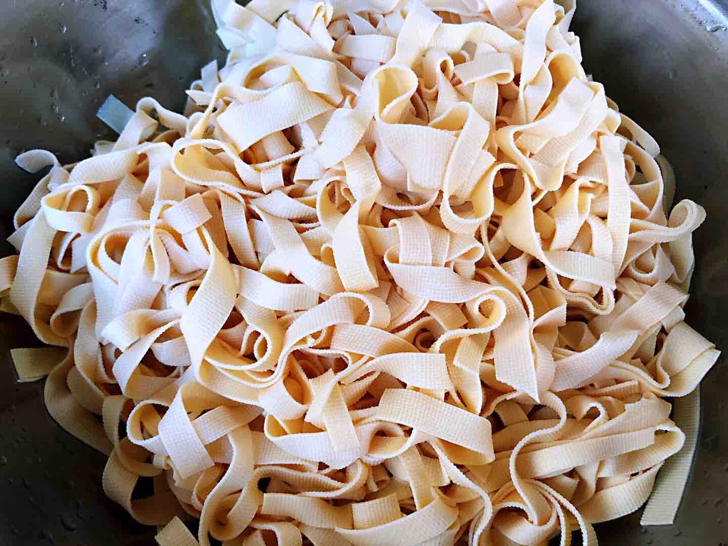 5、焯好水的千张丝立即放入冷水中过凉,沥干水分。
