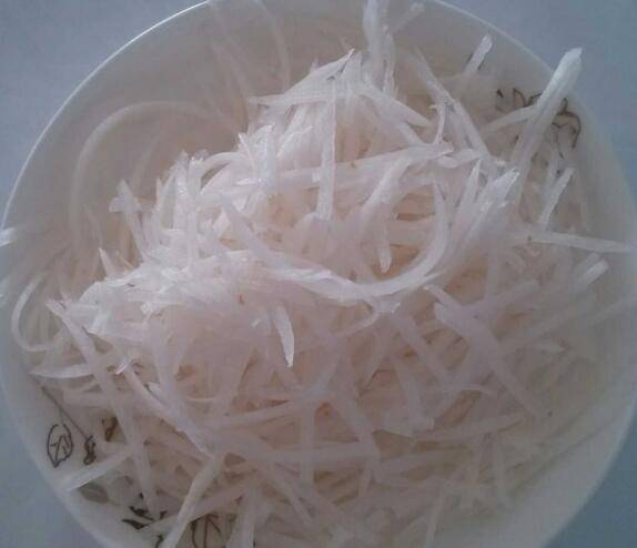 白萝卜洗好去皮切丝;