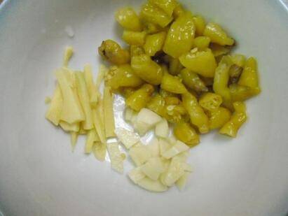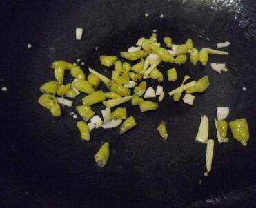把泡椒、洋葱、大葱、蒜,放入锅中煸炒香。