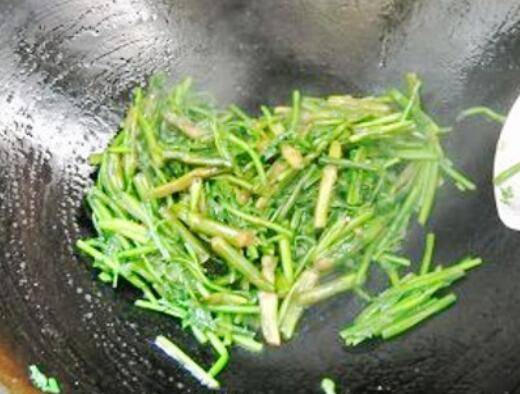 锅中余油,下水芹,加入适量盐,炒匀。