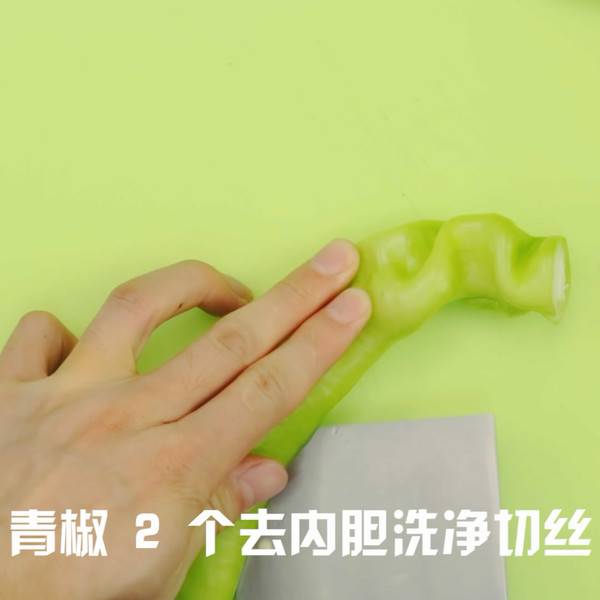 2、青椒去内胆,洗净切丝。
