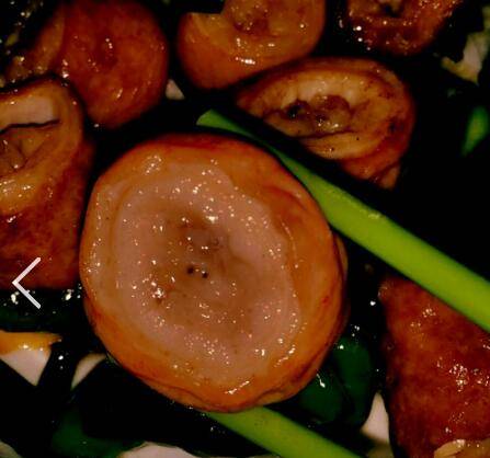 猪大肠适量、青辣椒适量、葱适量、姜片适量、蚝油适量、酱油适量、香油适量、盐适量。
