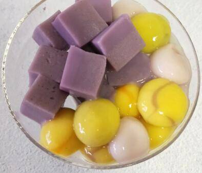多彩汤圆80克、布丁80克、牛奶120毫升。