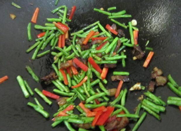 最佳答案用料:豇豆200克、腊肉100克、红尖椒1个、植物油2汤匙、食盐2克、生抽1茶匙、蒜2瓣。1.把豇豆摘洗干净,备好腊肉、蒜和红尖椒。2.腊肉切薄片,豇豆切小段,红尖椒去皮切小段,蒜切粒。3.锅中放植物油润锅,把腊肉下锅煸炒出油。4.油多的话去掉一部分,把腊肉拔锅边,下蒜粒爆香。5.把豇豆下锅煸炒。...