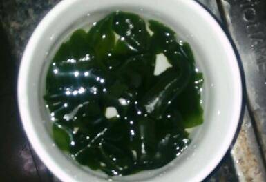 干海带泡发,鸡蛋打碎。