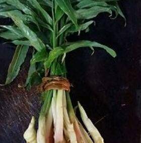 1.把姜叶外皮拨去留下内心备用。