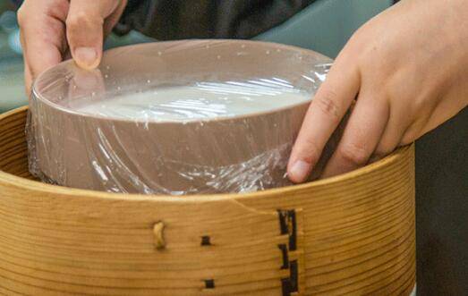 大火将蒸锅里的水烧开,放入米浆小火蒸40分钟,直至熟透成形就关火出锅。