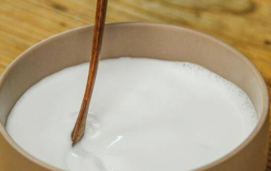 打好的米浆过滤到容器中,捞出浮沫。