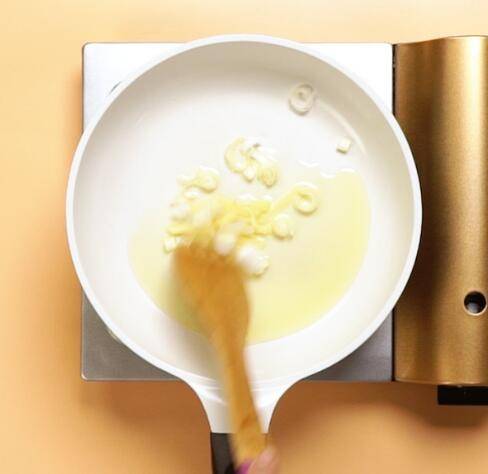 锅中放油,倒入姜片,葱花,大火爆香。