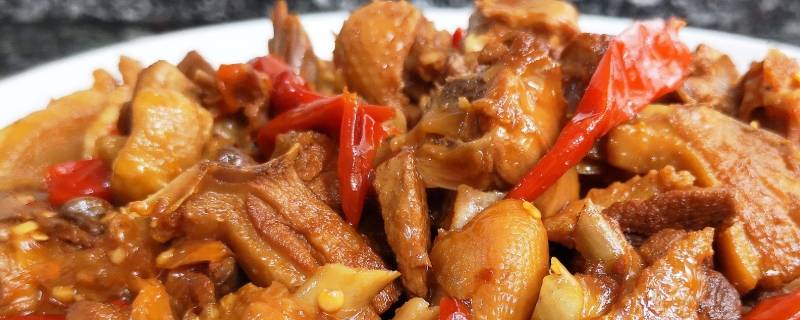 主料:鸡腿200克。辅料:葱5克、姜5克、料酒8克、胡椒粉1克、白砂糖3克、干辣椒15克、生粉10克。