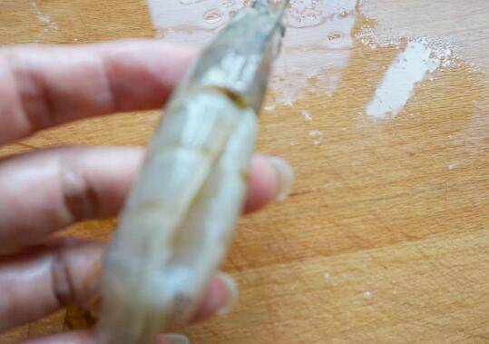 1、先把大虾开背挑去虾肠,剪去虾须。