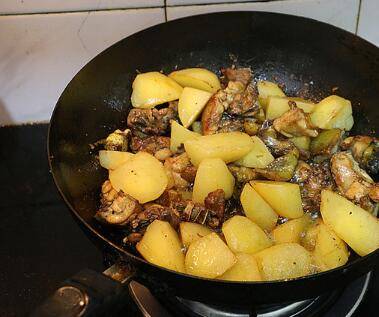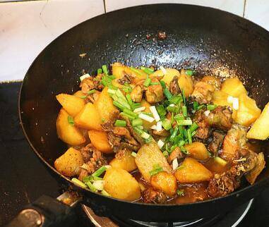 最佳答案主料:土豆2个、鸡肉适量。辅料:料酒1勺、蚝油一勺、生抽适量、白糖一小勺、清水大半碗、小葱适量、食盐适量、食用油适量、生姜三片、大蒜适量、蒸鱼豉油1勺。鸡肉清洗干净,剁块待用。土豆去皮清洗干净,切滚刀块,洗去表面淀粉,沥干水分待用。热锅凉油,加入生姜,大蒜煸香,加入鸡肉,料酒翻炒...