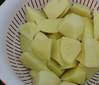 土豆去皮清洗干净,切滚刀块,洗去表面淀粉,沥干水分待用。
