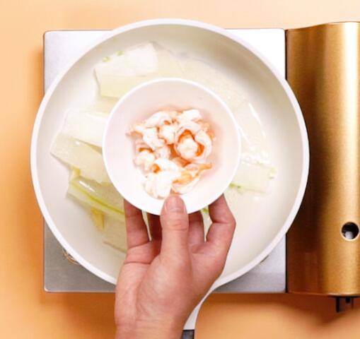 用料:虾仁100克、冬瓜350克、蒜4克、姜5克、葱3克。