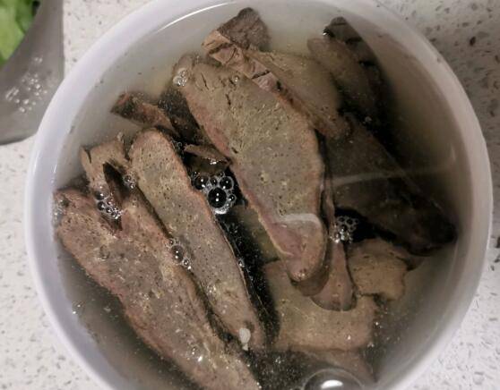 1、把切好的腊猪肝用水浸泡一会,因为腊猪肝大多比较咸。