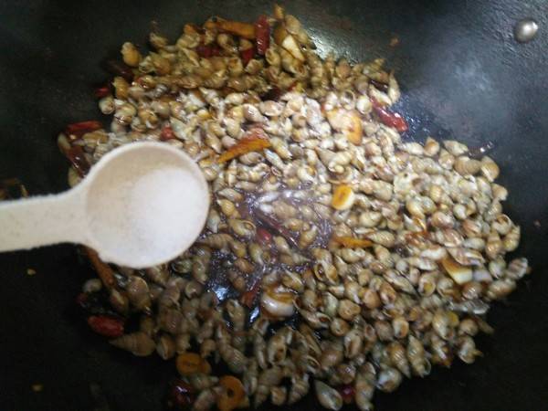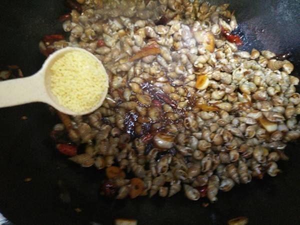 6、放海螺丝炒匀。