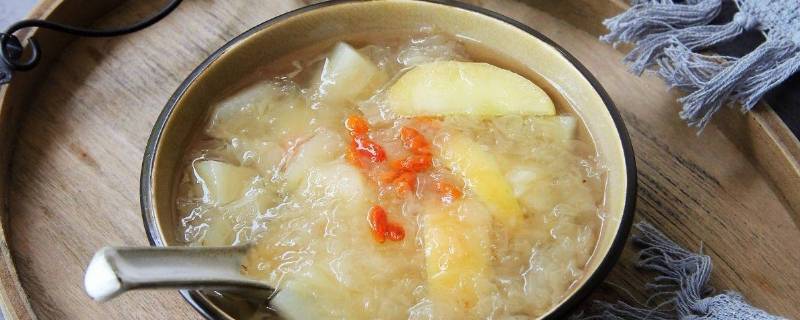 2、养颜护肤:能增强皮肤的抗损伤能力。含有大量胡萝卜素,有助于维持皮肤细胞组织正常机能,刺激皮肤新陈代谢,保持皮肤润泽细嫩。增强皮肤张力、消除皱纹的功效。银耳还含有一种类似于阿拉伯树胶的物质,对皮肤角层有良好的滋养和延缓衰老的作用。长期食用,可使皮下组织丰满,皮肤细腻滋润而有弹性,为冬春美容护肤佳品。
