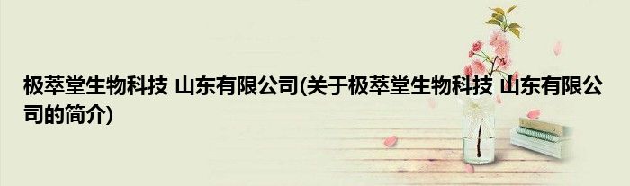本文关于极萃堂生物科技 山东有限公司的简介就讲解完毕,希望对大家有所帮助。