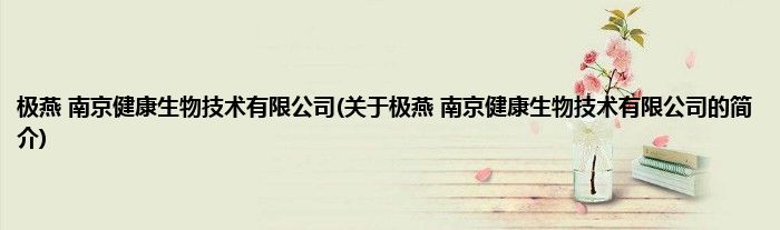极燕 南京健康生物技术有限公司(关于极燕 南京健康生物技术有限公司的简介)