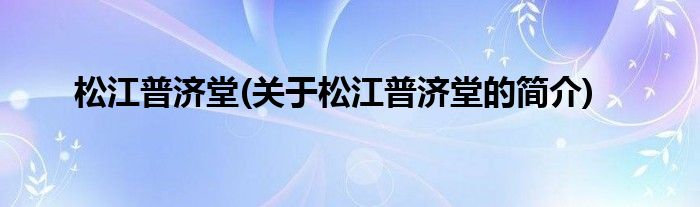 松江普济堂(关于松江普济堂的简介)