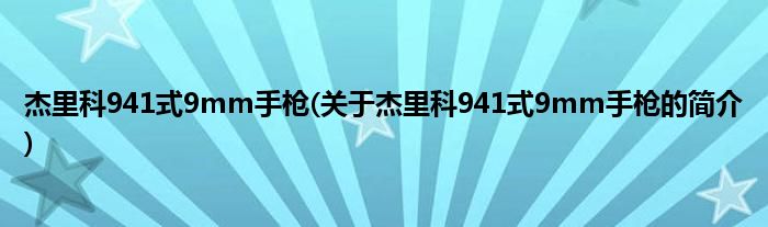 本文关于杰里科941式9mm手枪的简介就讲解完毕,希望对大家有所帮助。