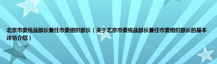 北京市委统战部长兼任市委组织部长(关于北京市委统战部长兼任市委组织部长的基本详情介绍)