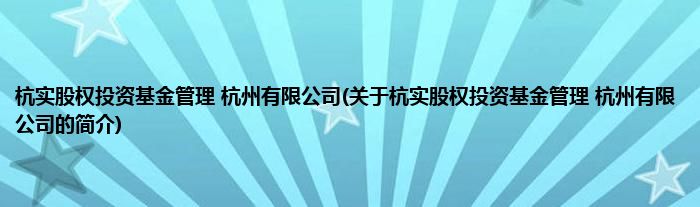 杭实股权投资基金管理 杭州有限公司(关于杭实股权投资基金管理 杭州有限公司的简介)