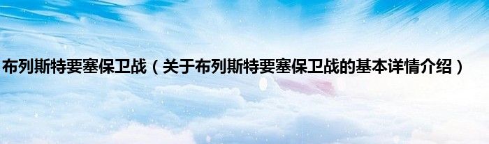 本文关于布列斯特要塞保卫战的基本详情介绍就讲解完毕,希望对大家有所帮助。