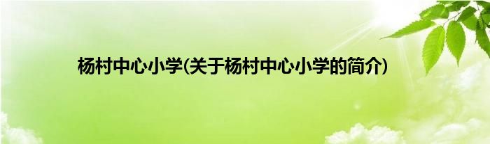大家好,杨村中心小学,关于杨村中心小学的简介很多人还不知道,现在让我们一起来看看吧!