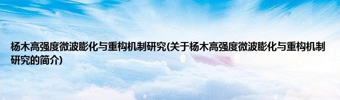 杨木高强度微波膨化与重构机制研究(关于杨木高强度微波膨化与重构机制研究的简介)