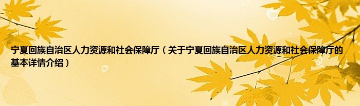 本文关于宁夏回族自治区人力资源和社会保障厅的基本详情介绍就讲解完毕,希望对大家有所帮助。