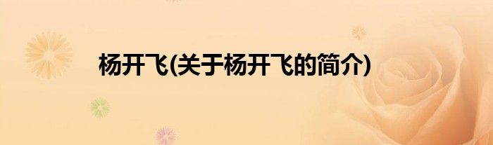 本文关于杨开飞的简介就讲解完毕,希望对大家有所帮助。