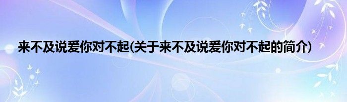 本文关于来不及说爱你对不起的简介就讲解完毕,希望对大家有所帮助。