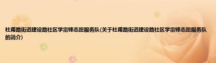 本文关于杜甫路街道建设路社区学雷锋志愿服务队的简介就讲解完毕,希望对大家有所帮助。