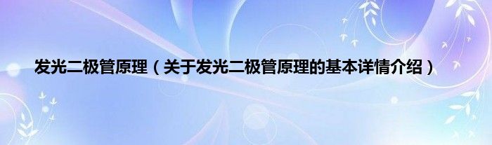 本文关于发光二极管原理的基本详情介绍就讲解完毕,希望对大家有所帮助。