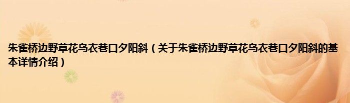 本文关于朱雀桥边野草花乌衣巷口夕阳斜的基本详情介绍就讲解完毕,希望对大家有所帮助。