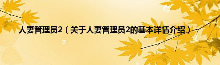 本文关于人妻管理员2的基本详情介绍就讲解完毕,希望对大家有所帮助。