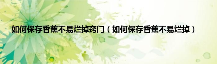 大家好,小科来为大家解答以上问题。如何保存香蕉不易烂掉窍门,如何保存香蕉不易烂掉很多人还不知道,现在让我们一起来看看吧!