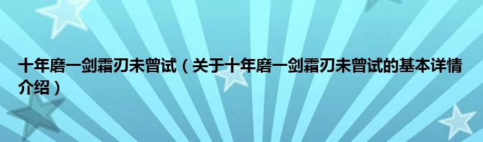 本文关于十年磨一剑霜刃未曾试的基本详情介绍就讲解完毕,希望对大家有所帮助。