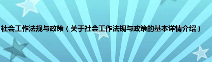本文关于社会工作法规与政策的基本详情介绍就讲解完毕,希望对大家有所帮助。