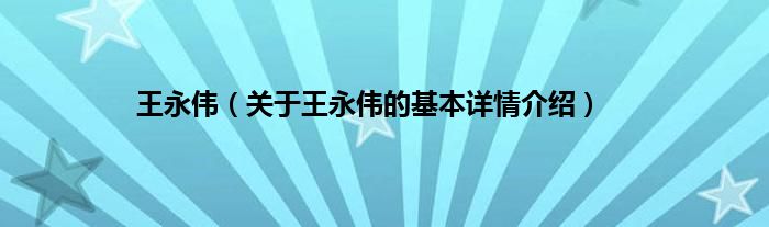 王永伟(关于王永伟的基本详情介绍)