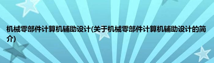 本文关于机械零部件计算机辅助设计的简介就讲解完毕,希望对大家有所帮助。