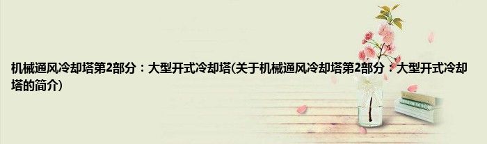 1、 《机械通风冷却塔第2部分:大型开式冷却塔》是2019年11月1日实施的一项中国国家标准。