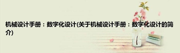本文关于机械设计手册:数字化设计的简介就讲解完毕,希望对大家有所帮助。