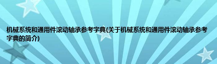 本文关于机械系统和通用件滚动轴承参考字典的简介就讲解完毕,希望对大家有所帮助。