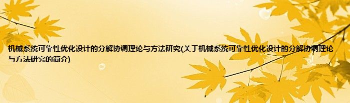 机械系统可靠性优化设计的分解协调理论与方法研究(关于机械系统可靠性优化设计的分解协调理论与方法研究的简介)