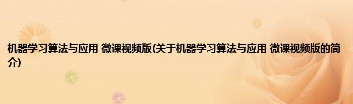 大家好,机器学习算法与应用 微课视频版,关于机器学习算法与应用 微课视频版的简介很多人还不知道,现在让我们一起来看看吧!