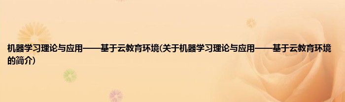 本文关于机器学习理论与应用——基于云教育环境的简介就讲解完毕,希望对大家有所帮助。