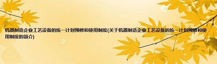 1、 机器制造企业工艺设备的统一计划预修和使用制度。